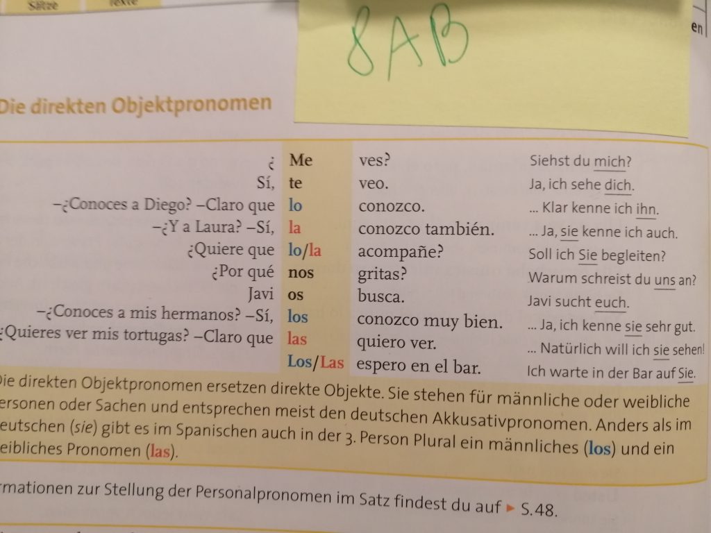 En el Gymnasium las clases de español se realizan en los octavos casi al 90% en alemán, las explicaciones, las instrucciones y los apuntes sobre reglas gramaticales se hacen en alemán. Los alumnos plantean sus dudas también en alemán, y hablan el español en tiempo presente solamente. Las instrucciones se hacen en español “militar” y en alemán .