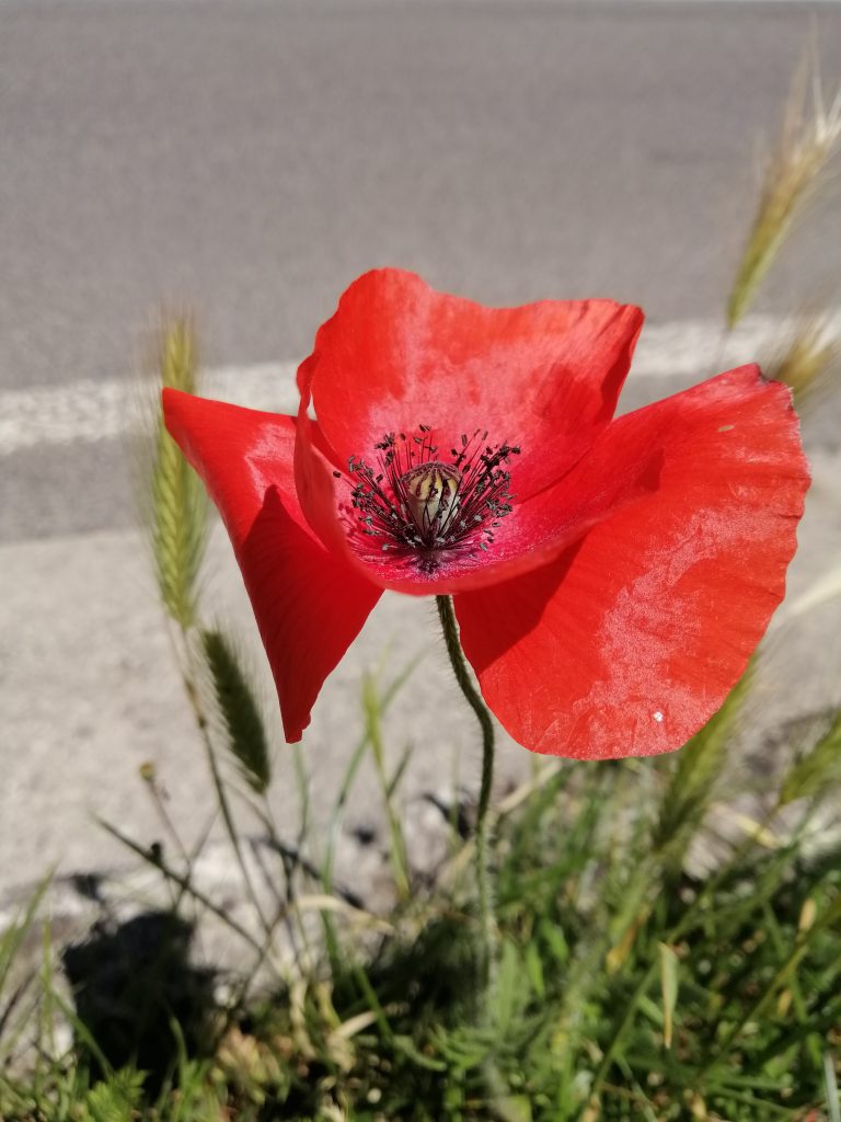 Una flor aparece, azul inmenso